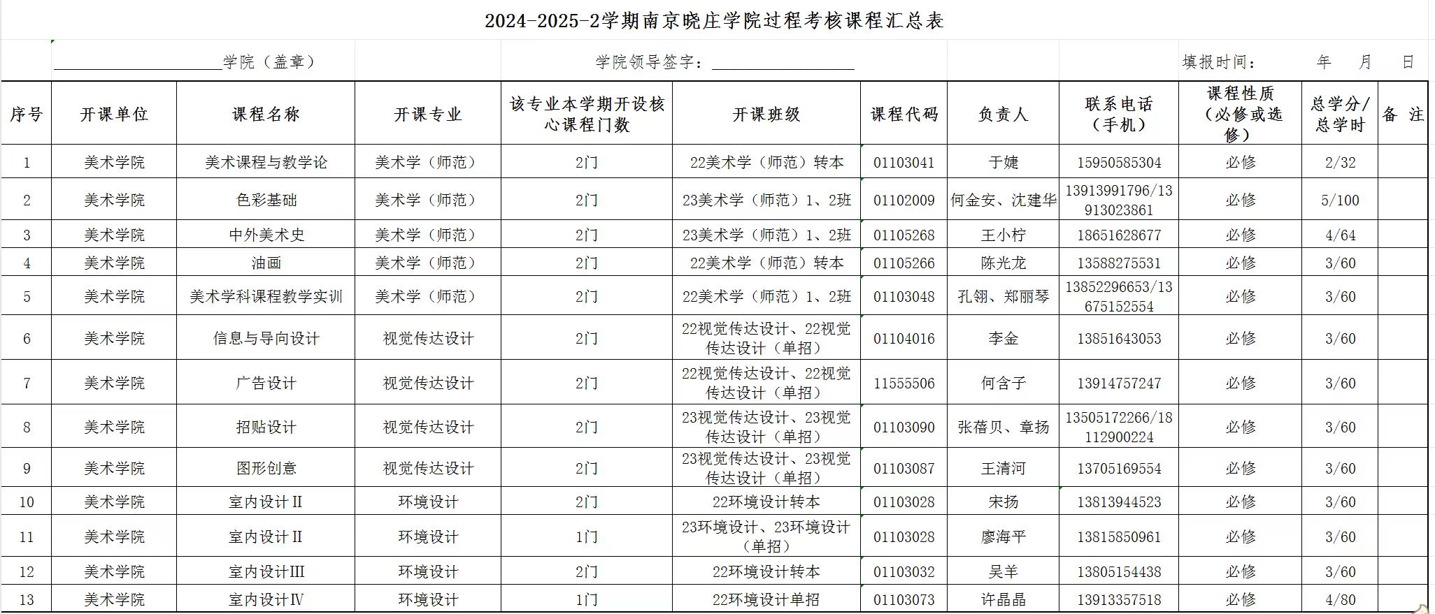 请各教研室主任依据《南京晓庄学院本科生课程考核管理办法》《南京晓庄学院考试工作管理规定》《南京晓庄学院课程考试改革管理办法(暂行)》做好试卷和结课材料的评阅复核及审查工作,试卷和结课材料分别并于8月24日前递送至教务办301和上次教研协作平台。(2024-2025-2学期考试科目详见表1。)