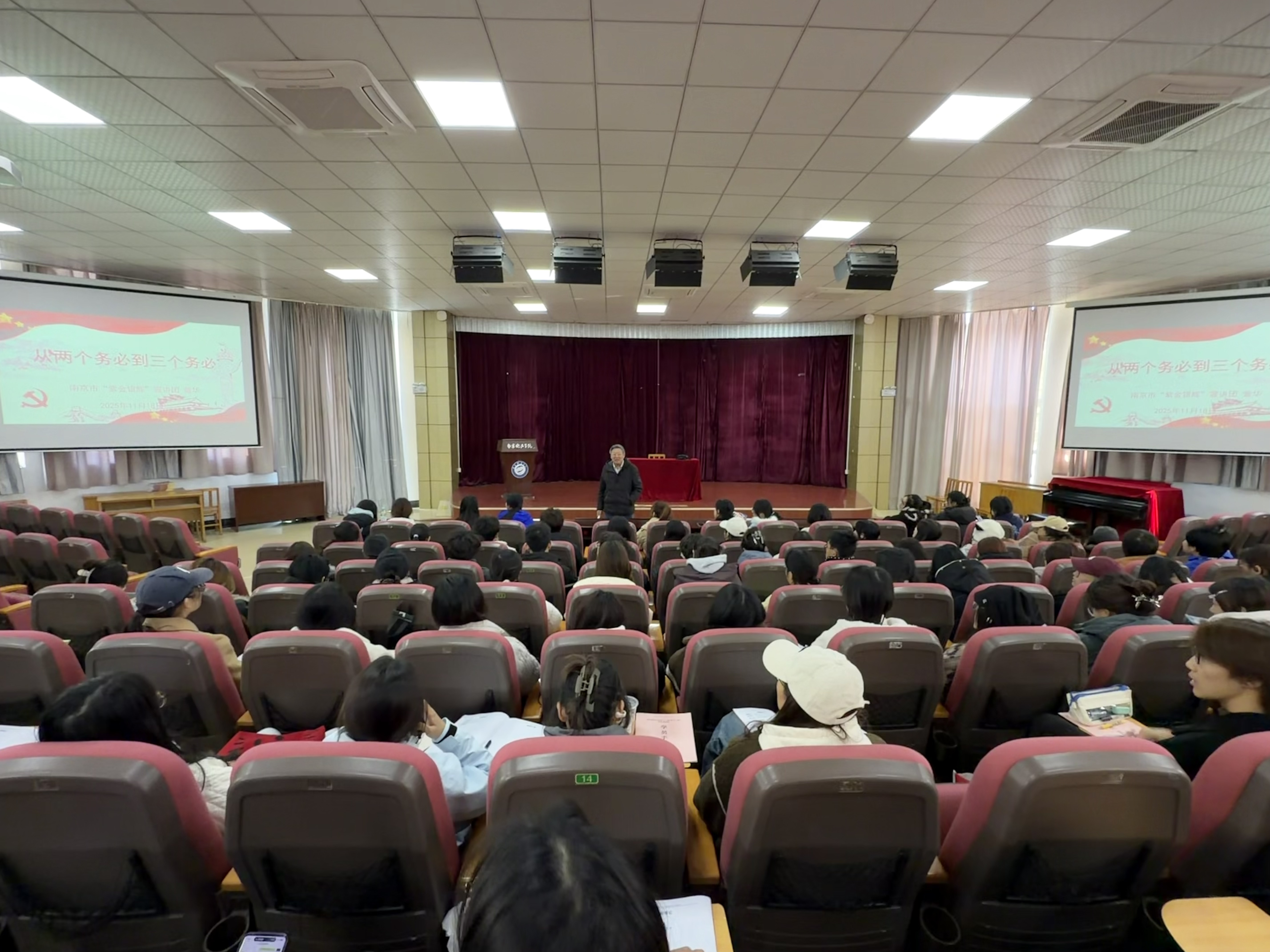 为深入学习贯彻党的二十大精神,引导青年学生传承红色基因、强化责任担当,11 18 日,美术学院党委、关工委邀请我校离退休老同志、南京市 “紫金银辉” 宣讲团成员美术学院党总支书记曾华为入党积极分子、青马工程初级班学员、新团员等150余人作“从两个务必到三个务必专题党课