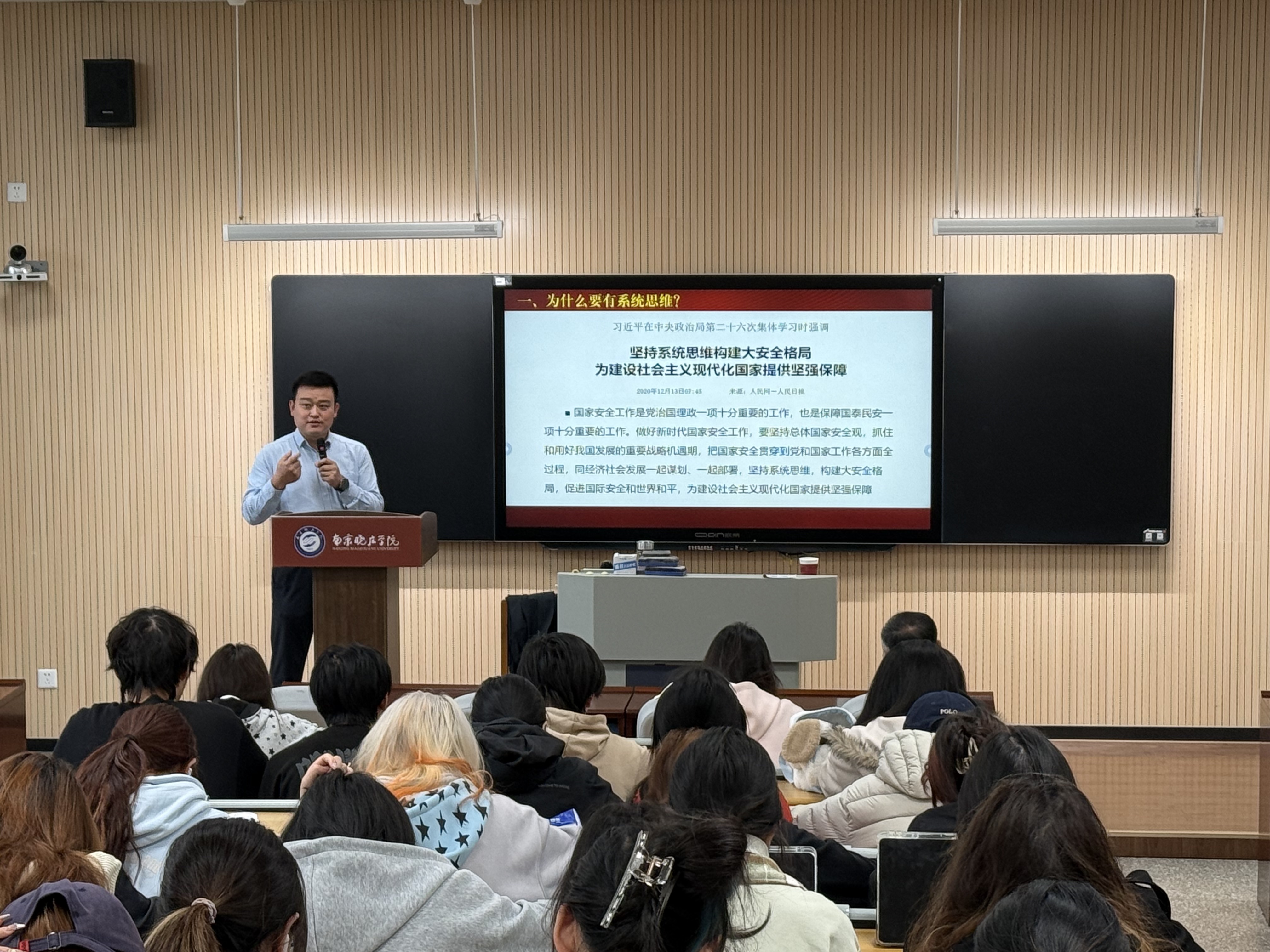 报告中,徐东波教授结合多领域典型安全案例,系统阐释推进国家安全体系和能力现代化的核心要义。他强调,面对复杂多变的国内外形势,这是新时代破解国家安全突出问题、统筹民族复兴战略全局与世界百年变局、全面贯彻总体国家安全观的必然要求,帮助师生精准把握当下国家安全工作的时代价值与核心要求。