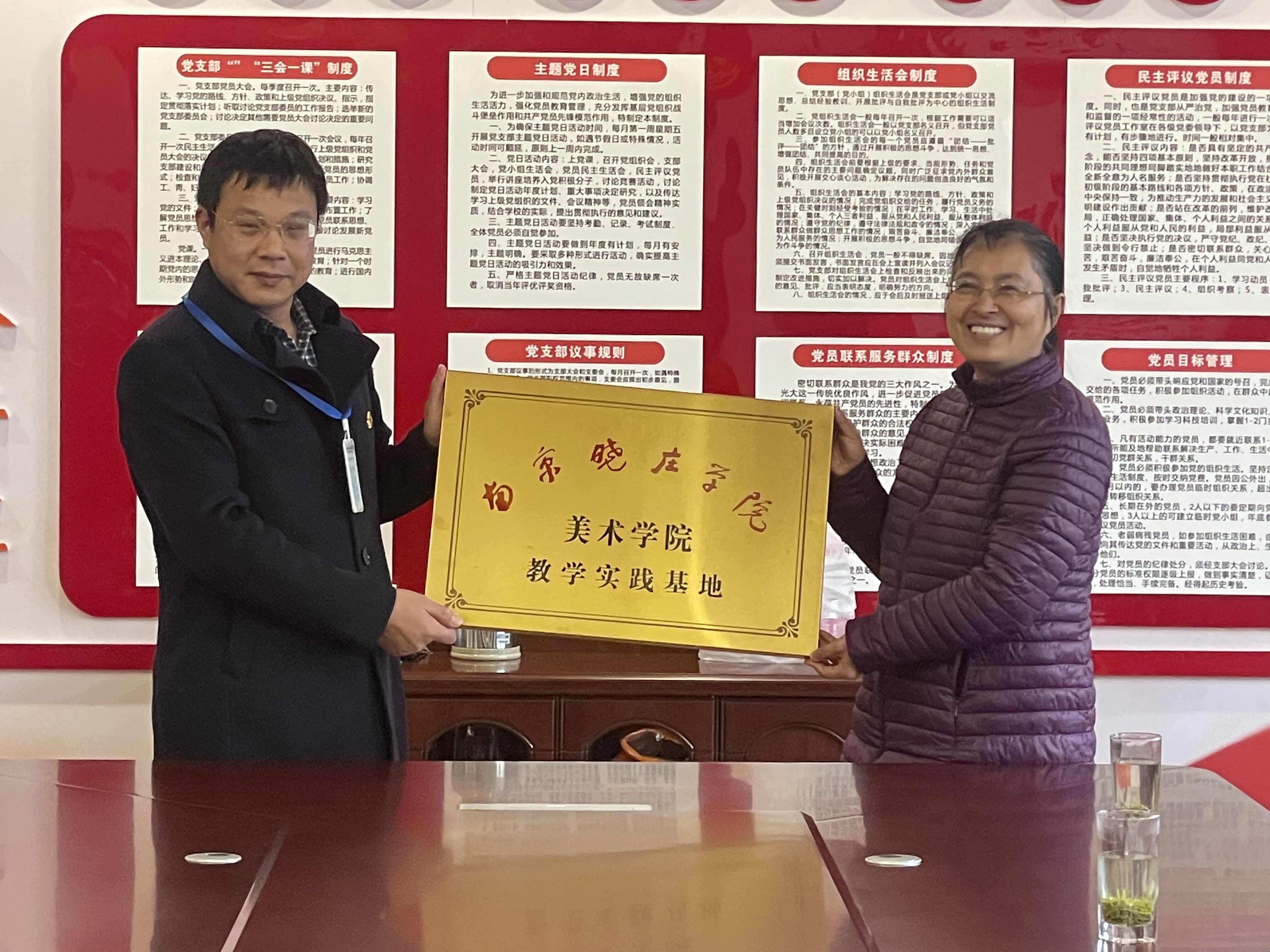 12月11日,学院党政领导及相关老师赴南京市齐武路初级中学看望正在进行教育见习的17级绘画师范专业学生并与见习单位领导座谈,并与该校签署实践教学基地协议并挂牌。