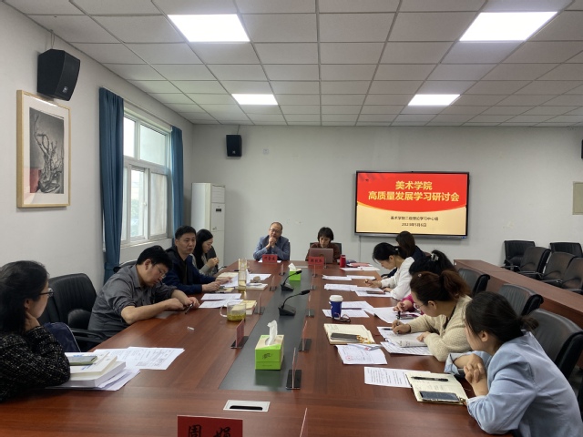 为落实主题教育总要求,凝聚发展共识,推动事业发展,5月6日上午,美术学院党总支理论学习中心组聚焦学院高质量发展主题,召开专题学习研讨会。学院理论学习中心组全体成员、科室负责人、专业负责人、教研室主任参加会议,会议由党总支书记蔡士文主持。