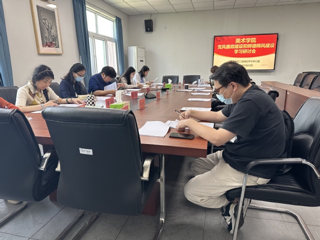 为深入开展学习贯彻习近平新时代中国特色社会主义思想主题教育,营造风清气正的工作和学习环境,5月23日上午,美术学院理论学习中心组召开党风廉政建设和师德师风建设专题学习研讨会。学院班子成员、党总支委员、党支部书记、各教研室主任参加会议。